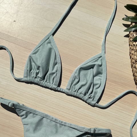 O Top Bali micro-canelado cintilante combina a elegância do acabamento micro-canelado com um toque de brilho sutil, perfeito para quem quer destacar-se na estação mais quente do ano. Seu design cortininha mantém a praticidade e sofisticação, enquanto o acabamento em viés nas laterais assegura uma sustentação excelente, mesmo com alças finas.